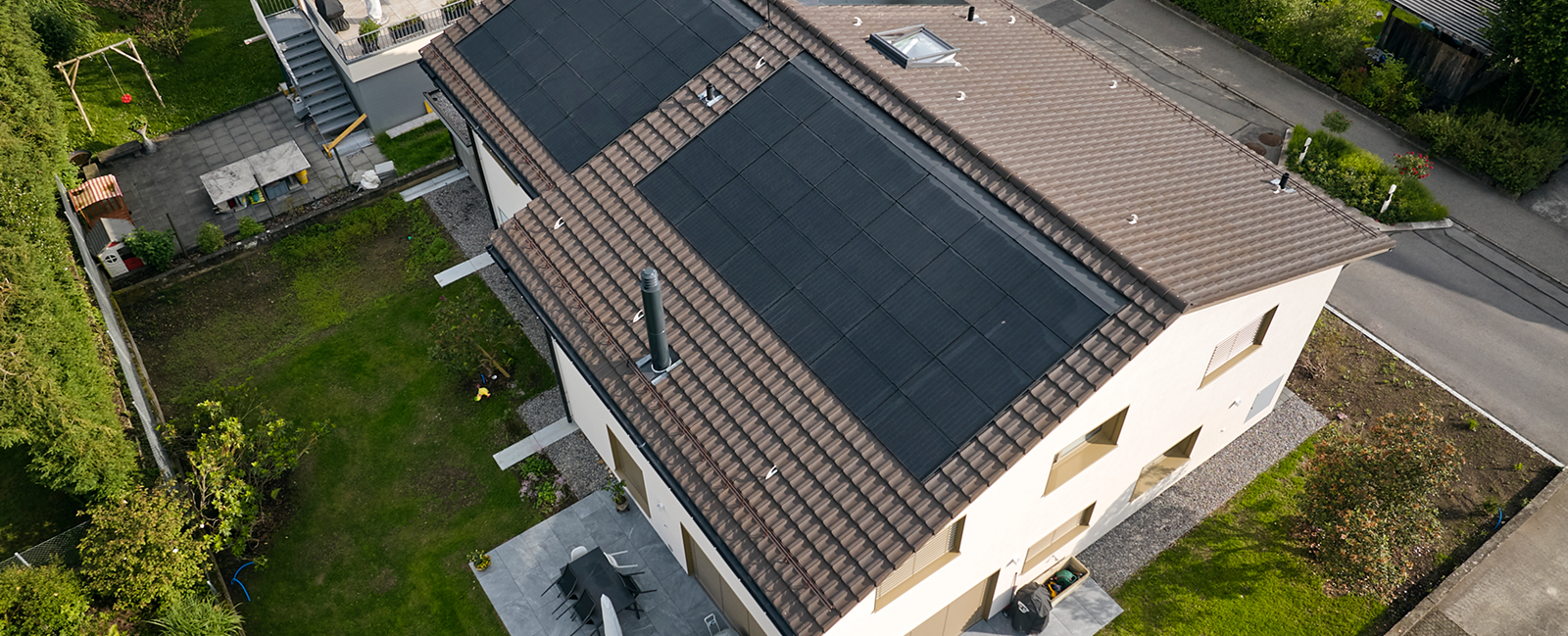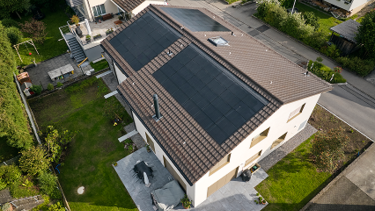 Das Dach legt die Nutzung der Sonnenenergie nahe. Eine Aufdachanlage bietet sich bei Steildächern besonders an.