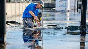Flüssigkunststoff dichtet eine Fläche nahtlos ab – ein Riesenplus gerade bei Flachdächern.